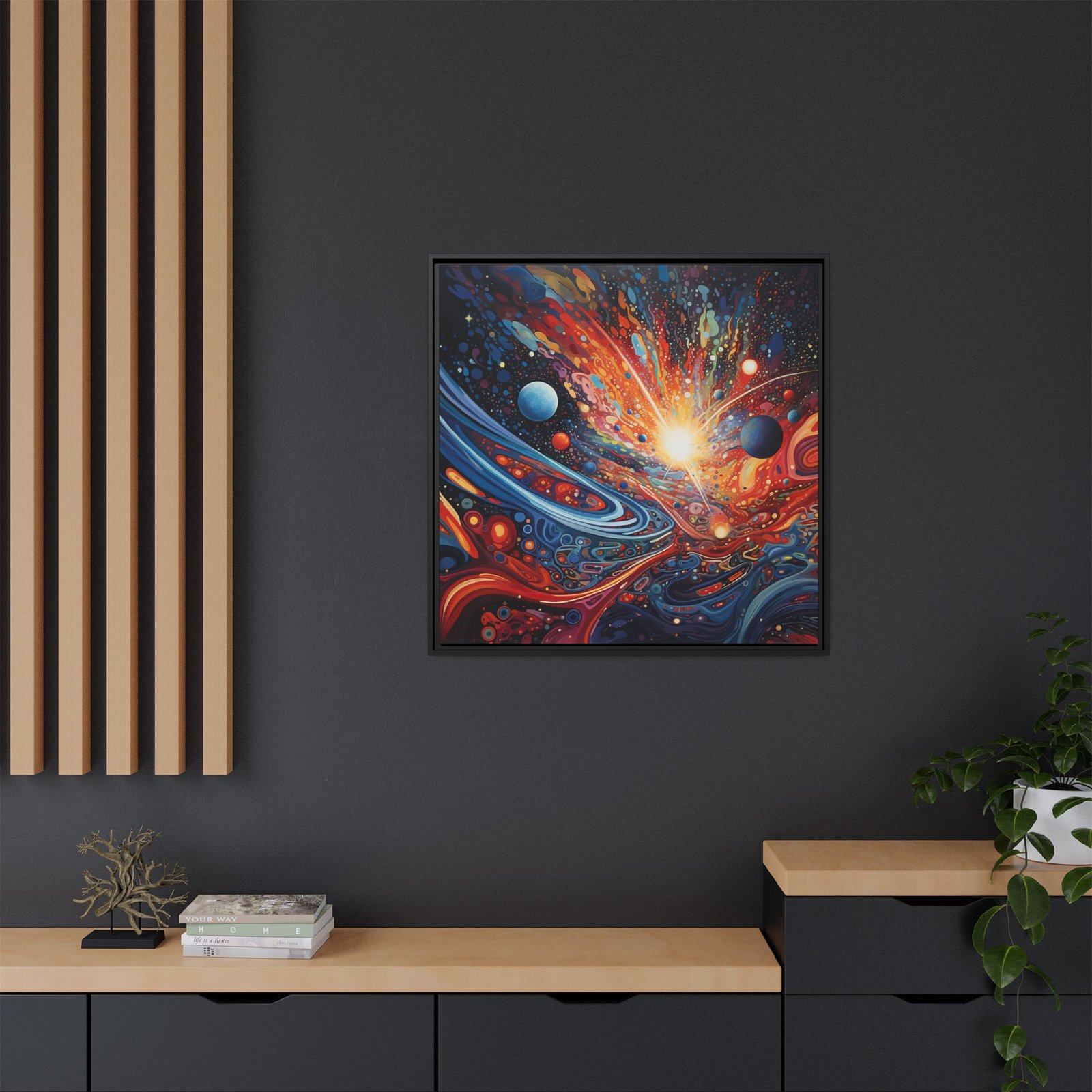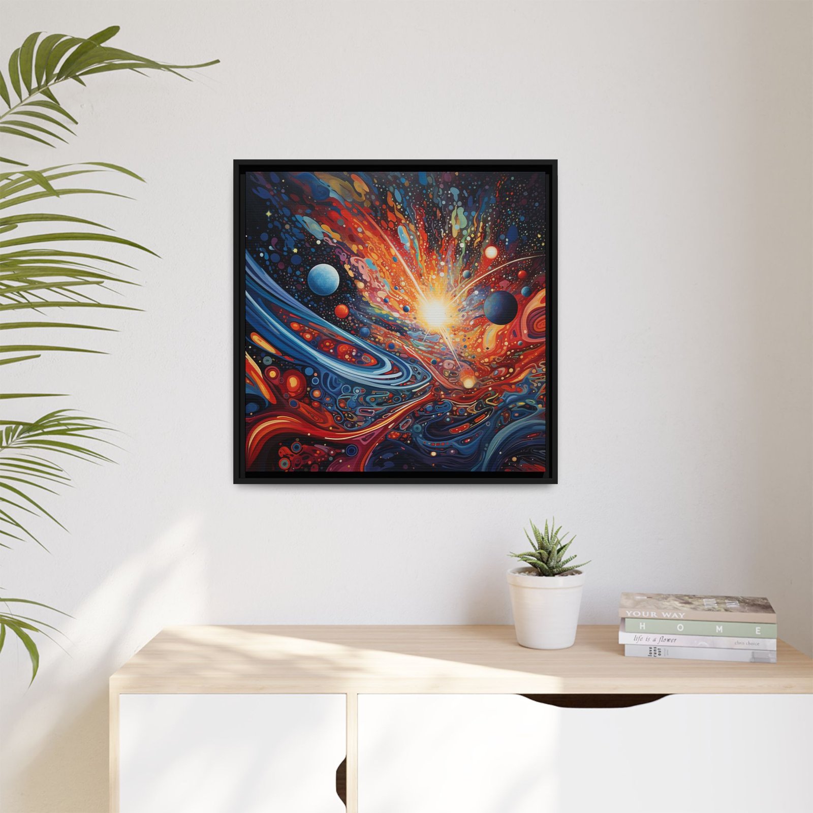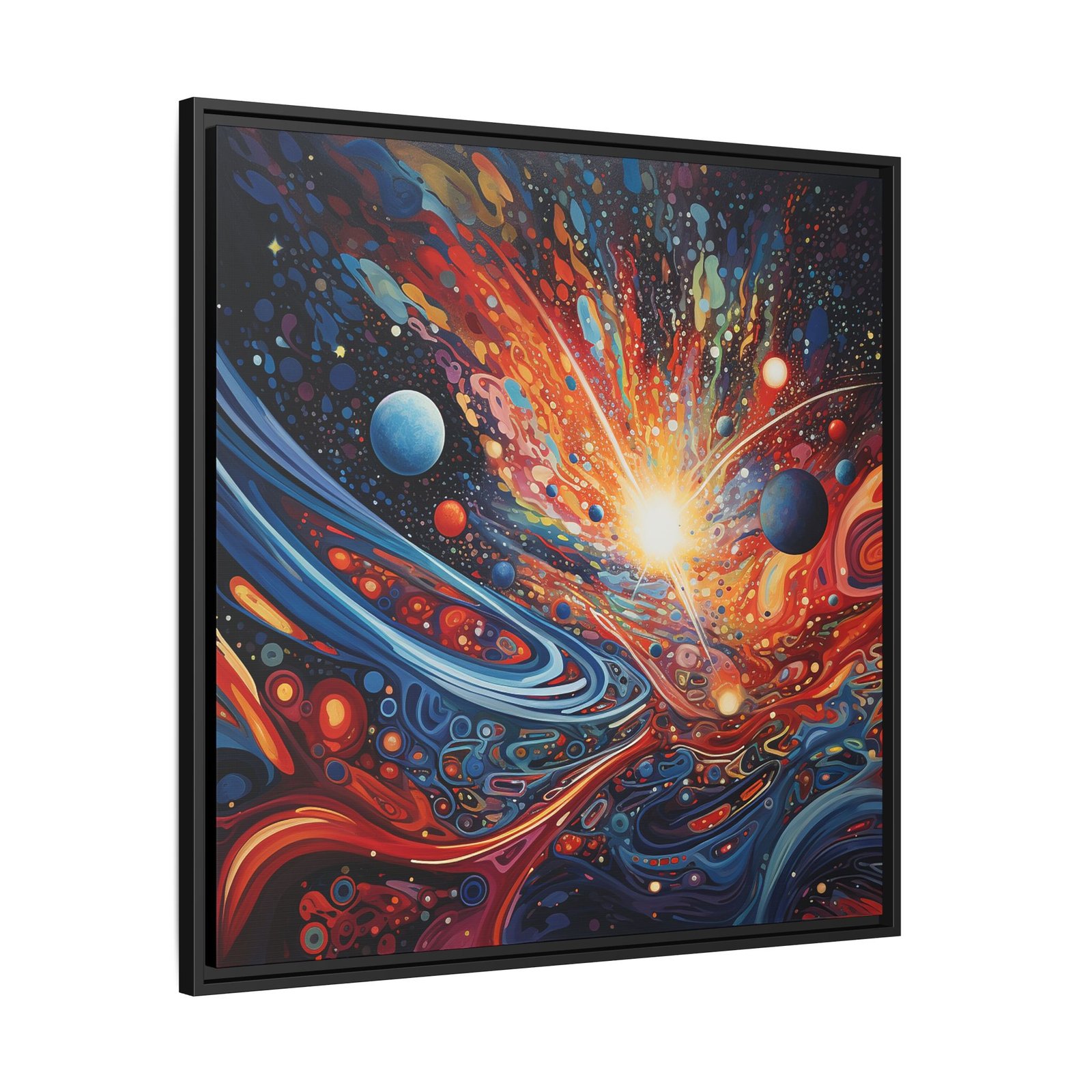 Immerse yourself in the grandeur of the cosmos with Celestial Symphony. This breath-taking abstract piece harmonizes vivid hues, intricate patterns, and cosmic energy to create a visual masterpiece that feels both infinite and electrifying. Swirling nebulas, radiant starbursts, and celestial waves blend seamlessly, evoking the vastness of the universe in a mesmerizing display of light and motion. Every detail pulses with the rhythm of the cosmos, making this artwork a stunning focal point for dreamers, stargazers, and lovers of the unknown. Perfect for modern interiors, creative spaces, or anyone drawn to the magic of the stars.