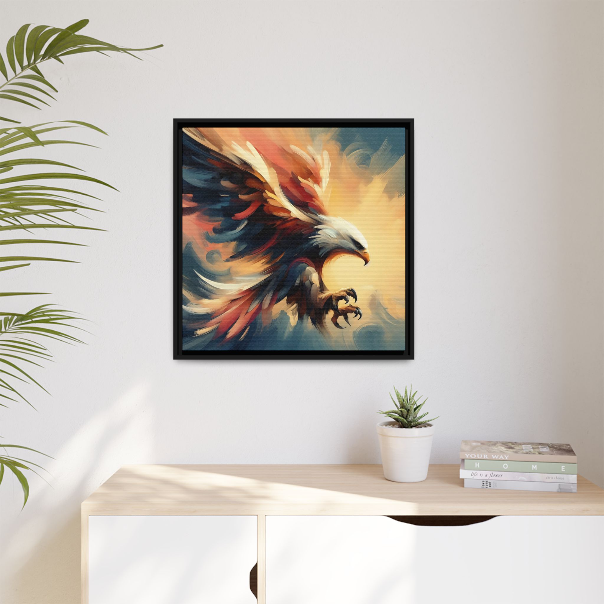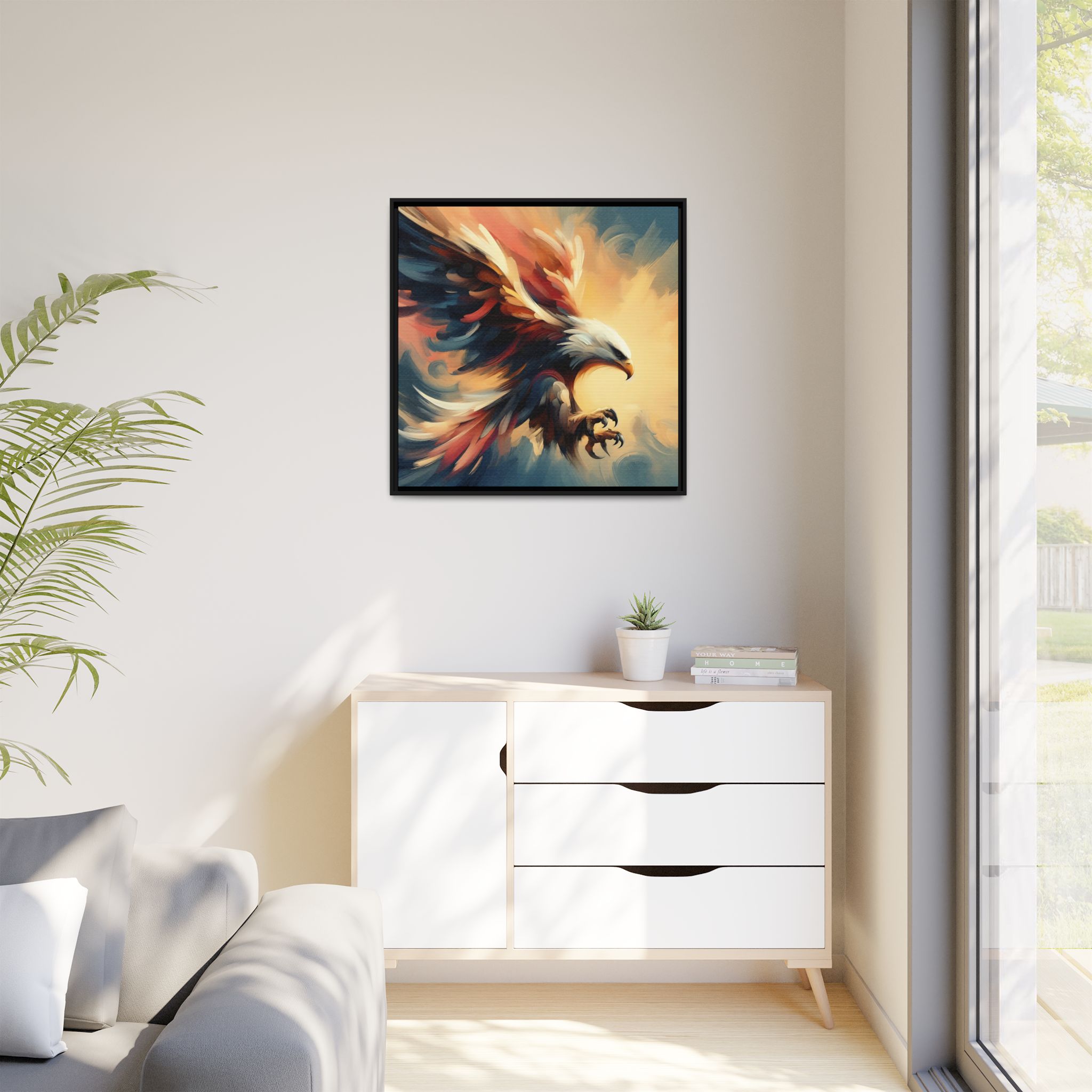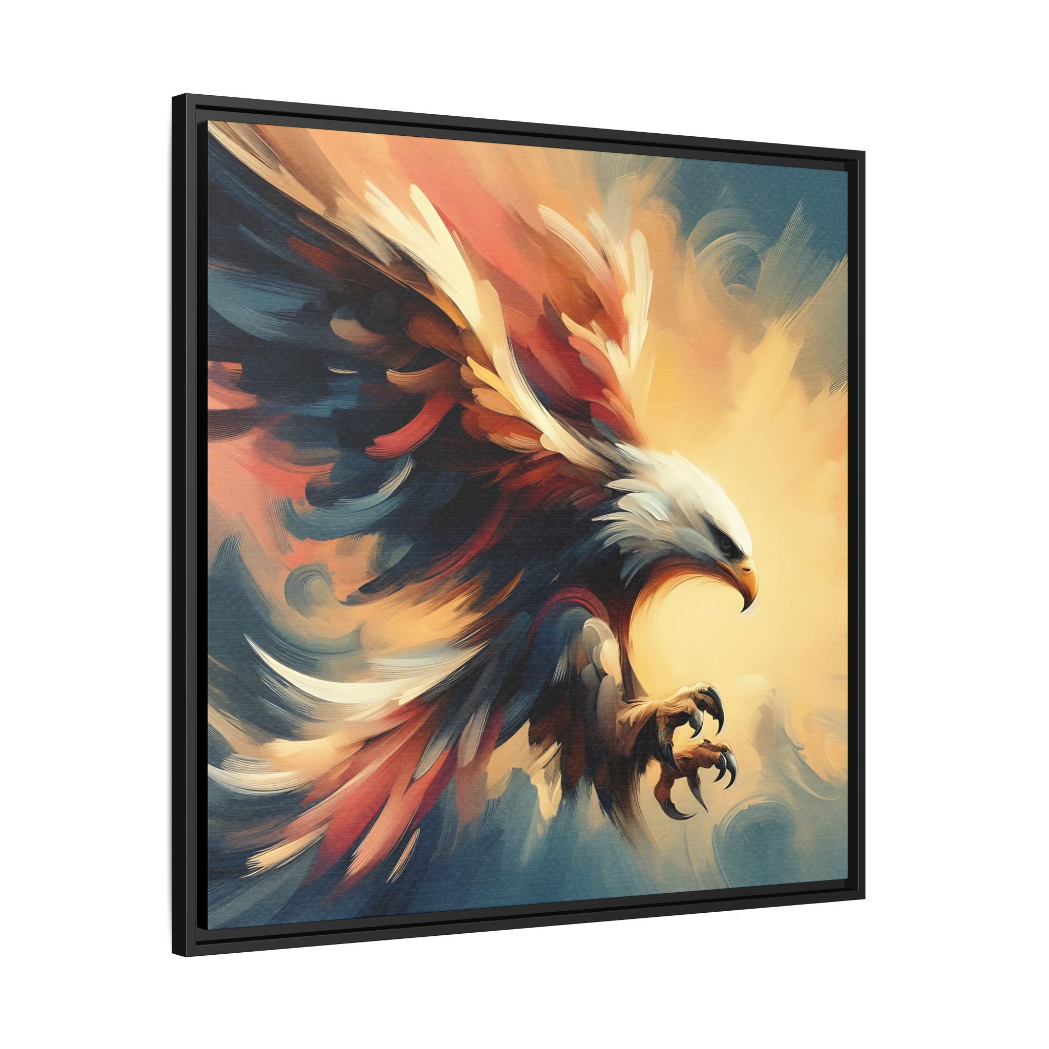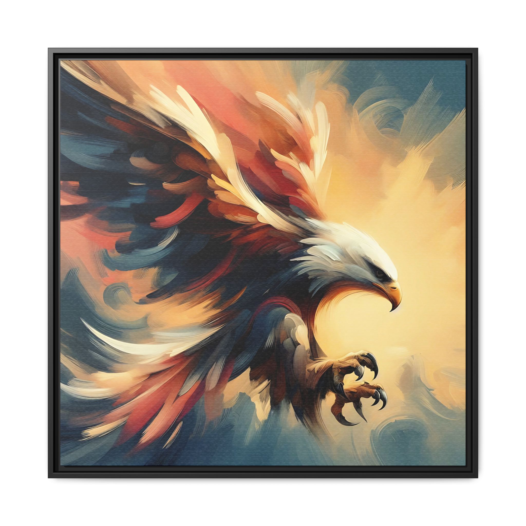 Soaring Spirit reimagines the eagle’s majestic essence through bold, abstract strokes that mirror its commanding presence and freedom. Sweeping lines evoke the expansive skies, while sharp, angular elements reflect the eagle’s precision and power. The interplay of colors captures the dynamic tension between strength and grace, symbolizing resilience and the unyielding pursuit of higher aspirations. This artwork transcends the physical form, celebrating the eagle as a timeless emblem of vision, freedom, and triumph.